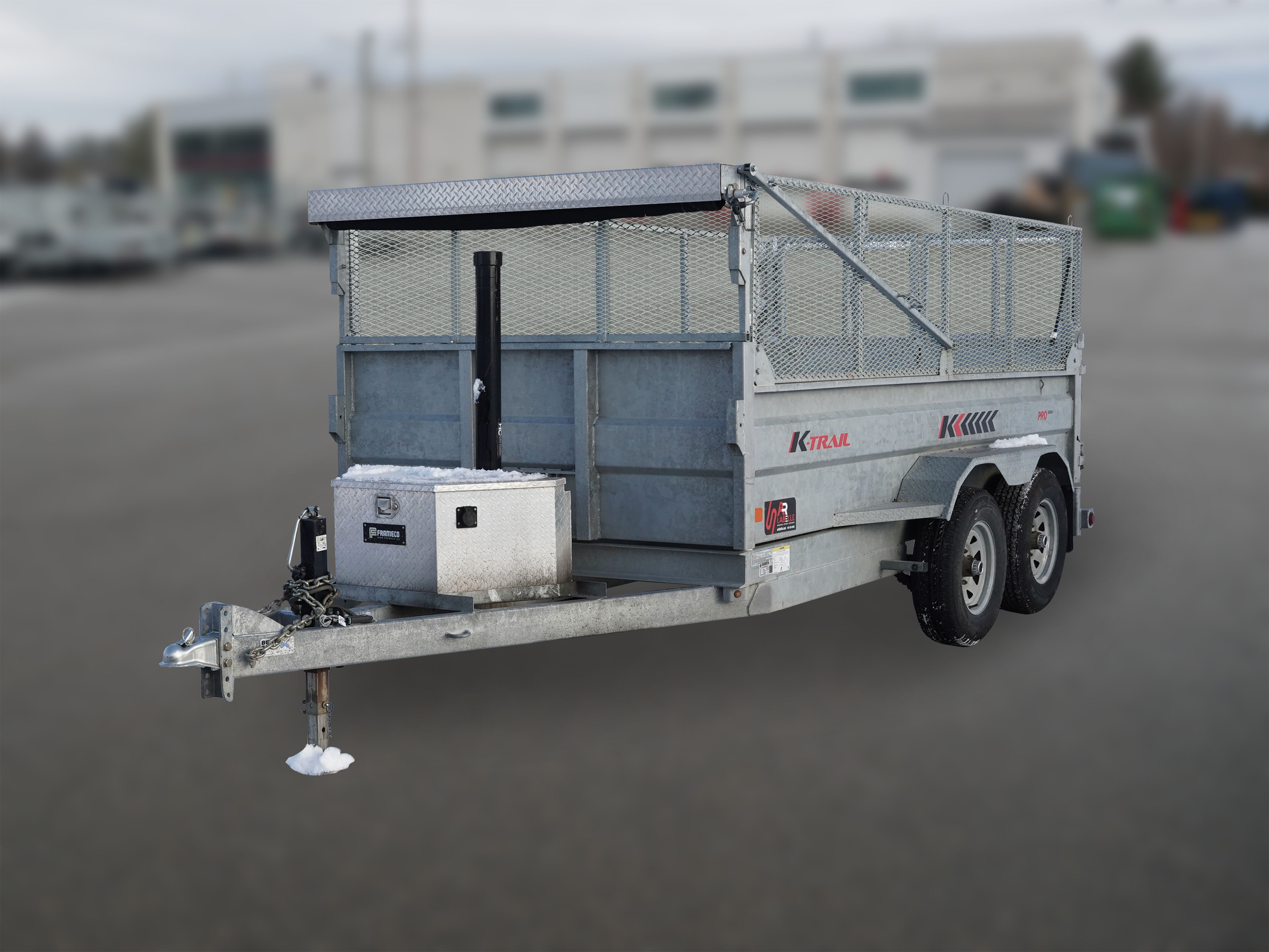Dump trailer with a galvanized frame. K-Trail heavy-duty dump trailer means innovation, efficiency, and quality. K-Trail presents quality trailers with an attractive design and a competitive price. With a used Trailer, Recyc and Consume Better!