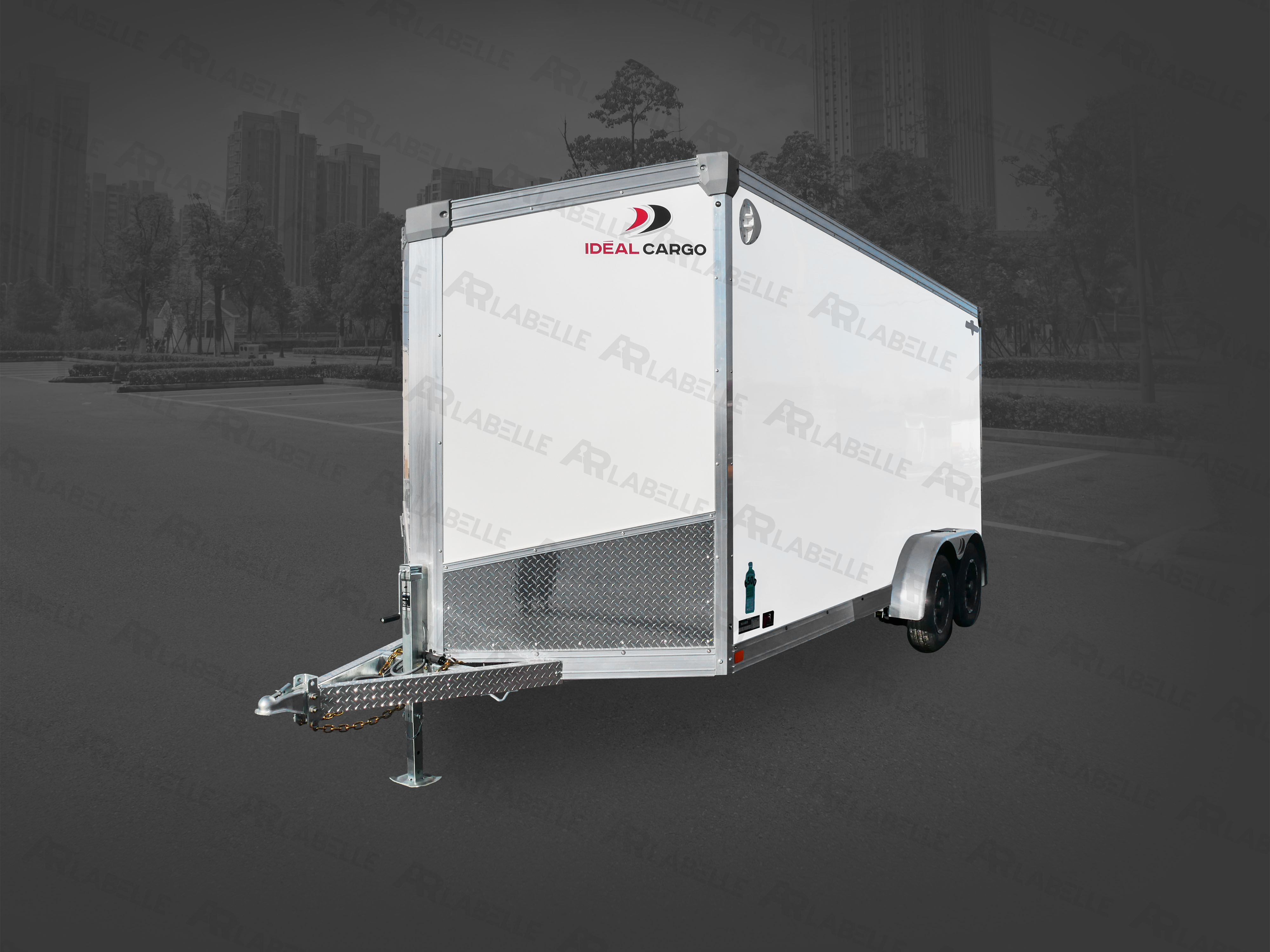 Remorque fermée avec structure en acier galvanisé. La gamme "Sportzone-Evocore" d'Idéal Cargo regroupe toutes les options populaires recherchées par les passionnés de sports motorisés. Innover pour le futur avec les nouveaux panneaux de biocomposite d'Idéal Cargo!