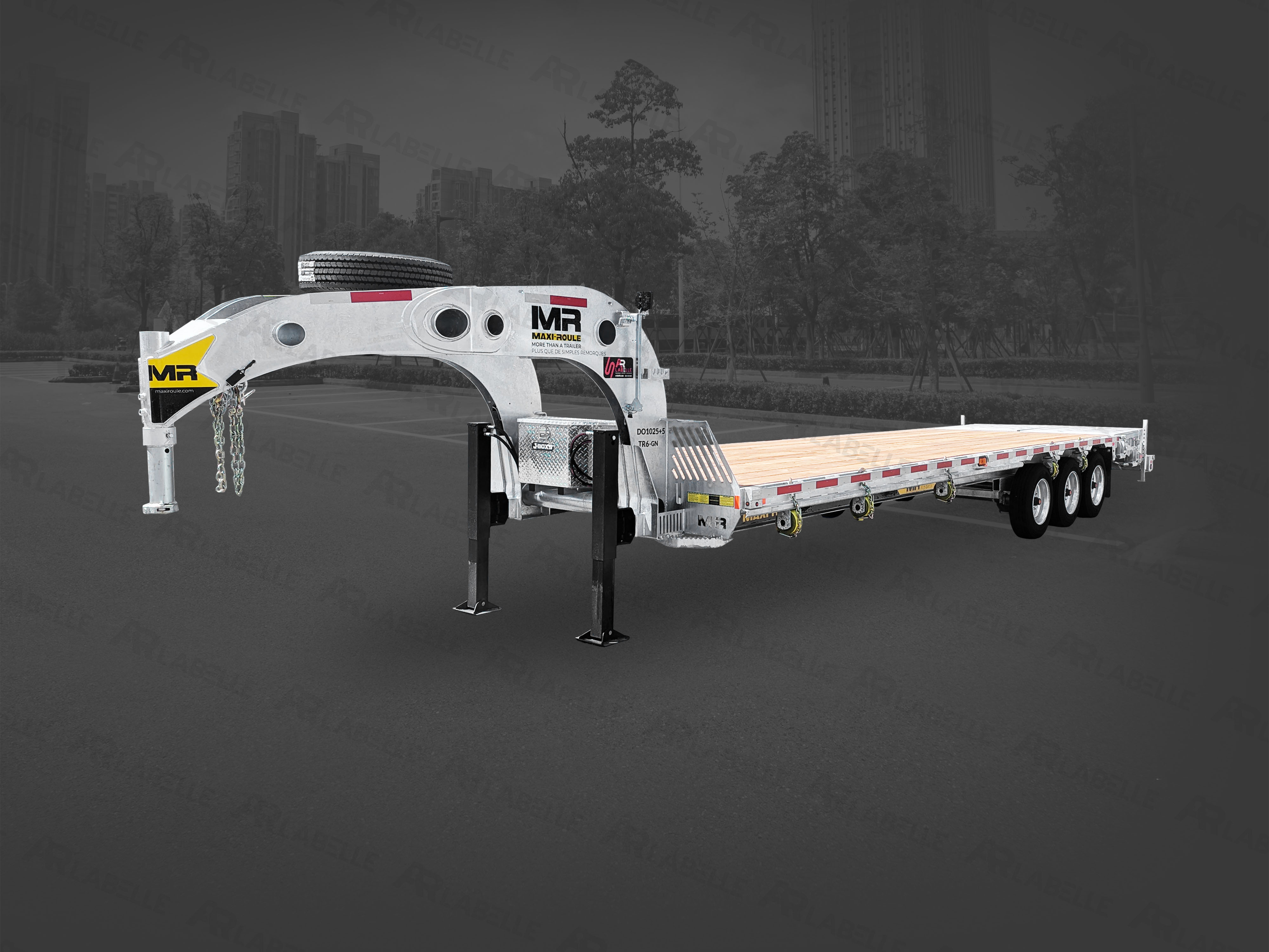 Remorque plateforme avec structure en acier galvanisé. La plateforme à col de cygne pour le transport d'équipements de Maxi-Roule est synonyme d'innovation, d'efficacité et de qualité. Chaque détail a été pensé dans le but de vous donner une expérience au-delà de vos attentes. Voici une remorque polyvalente et versatile!