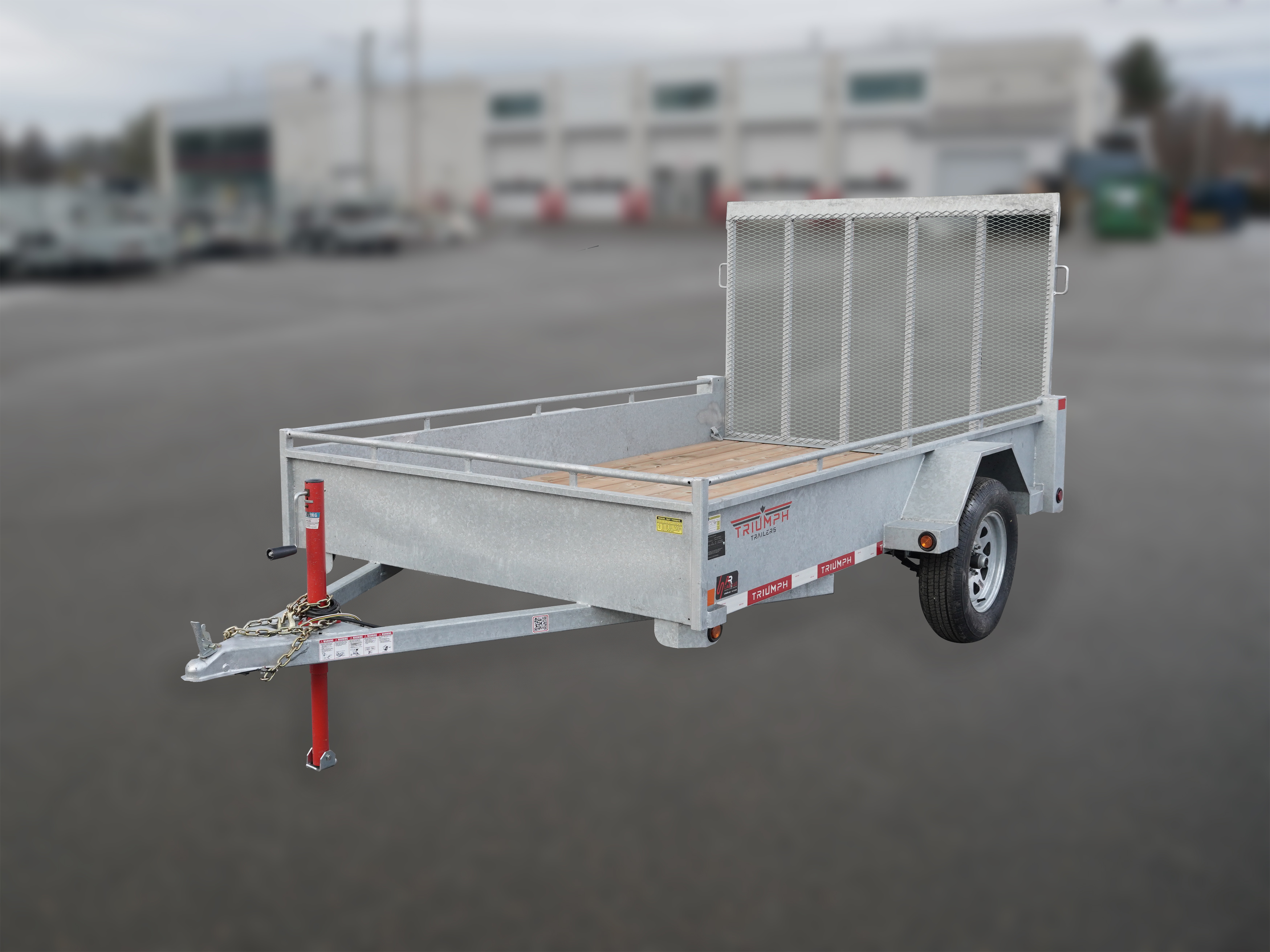 Remorque plateforme avec structure en acier galvanisé. La plateforme utilitaire surbaisée de Triumph est synonyme de durabilité et de fiabilité. Voici une remorque sûre et fiable pour les années à venir, quel que soit le type de travail pour lequel vous en avez besoin!