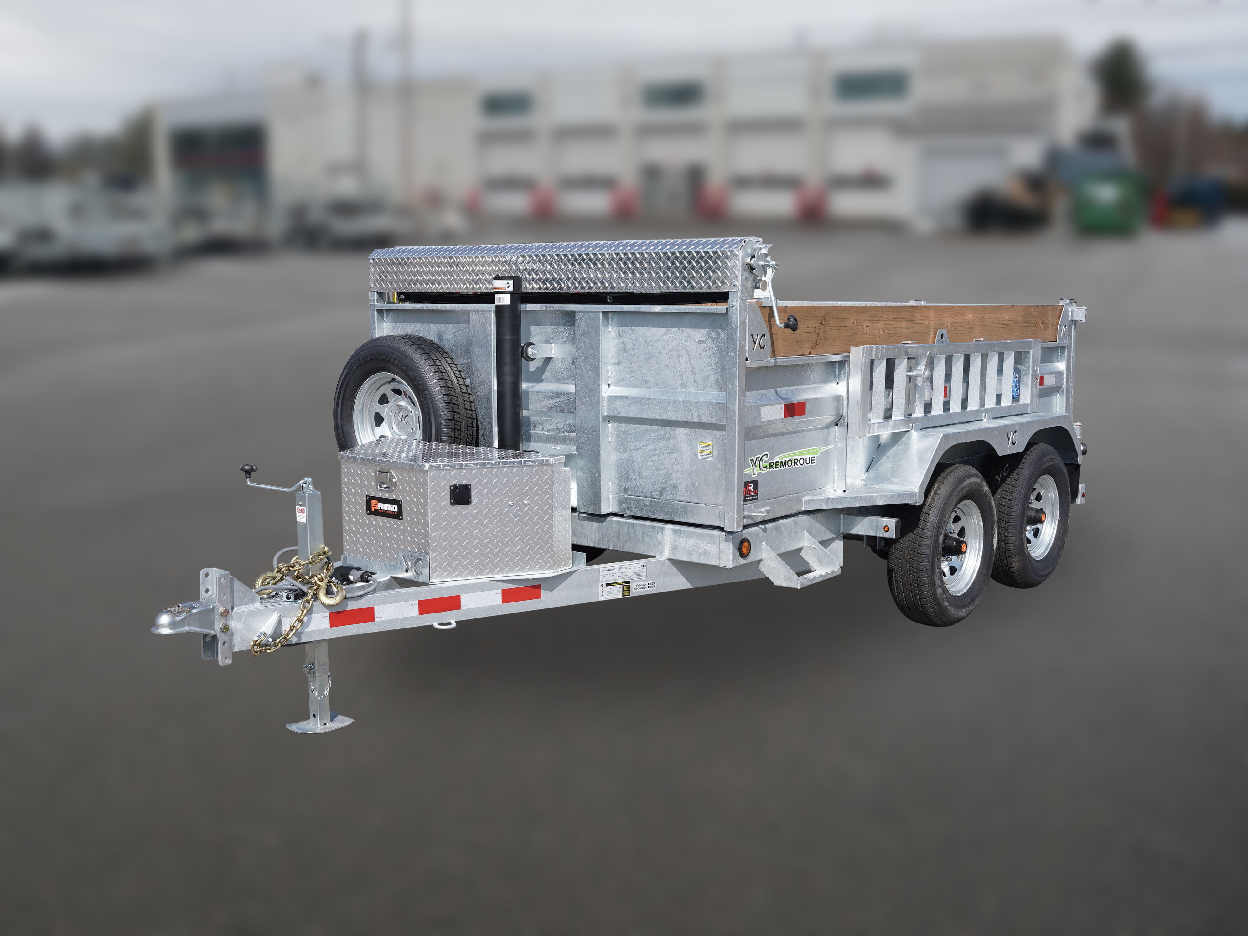 Remorque à benne basculante (dompeur) avec structure en acier galvanisé. La remorque à benne basculante d'Yves Chamberland vous offre un produit sécuritaire, solide et polyvalent. Yves Chamberland construit des remorques de qualité à des prix compétitifs!