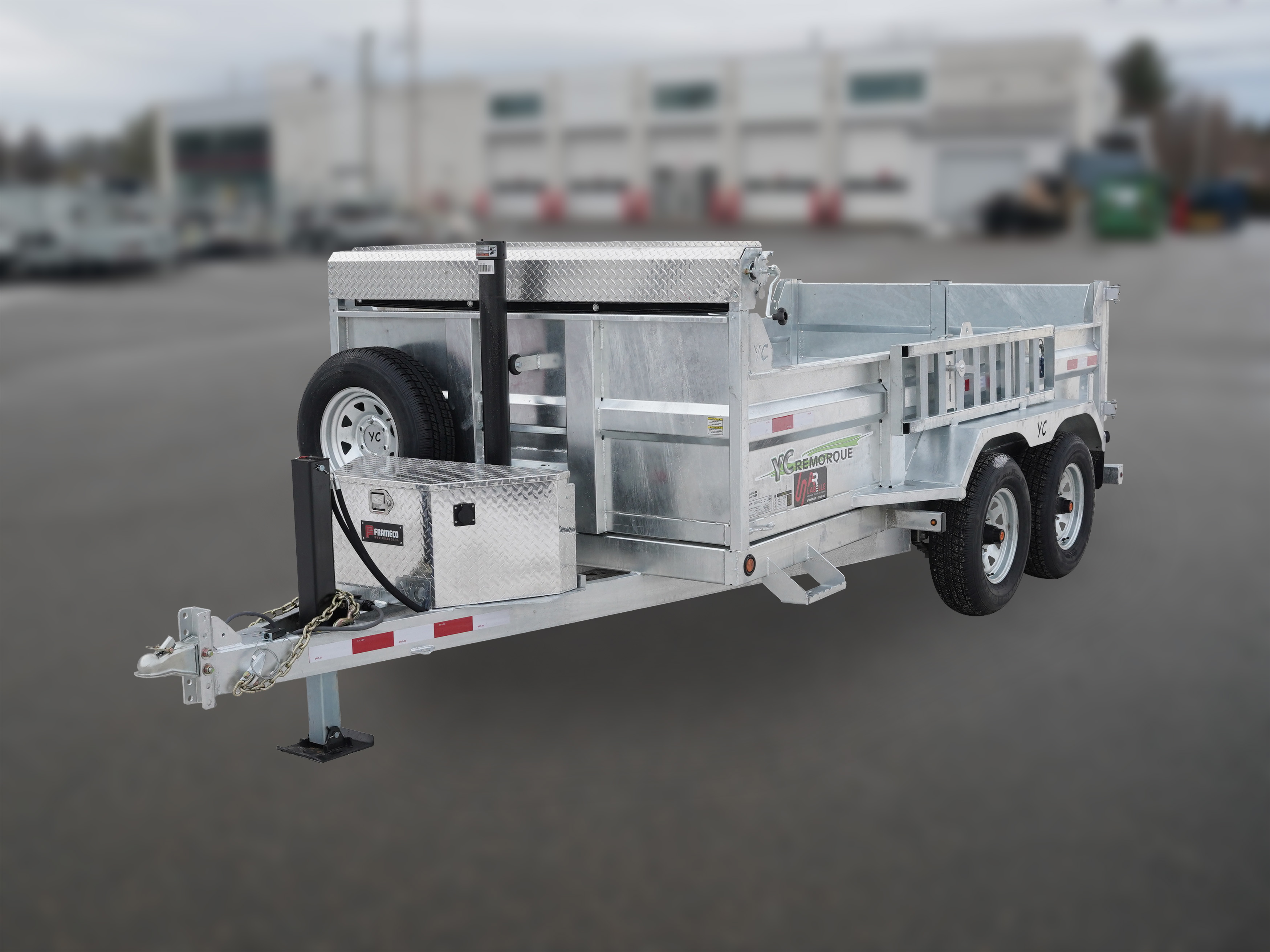 Remorque à benne basculante (dompeur) avec structure en acier galvanisé. La remorque à benne basculante d'Yves Chamberland vous offre un produit sécuritaire, solide et polyvalent. Yves Chamberland construit des remorques de qualité à des prix compétitifs!